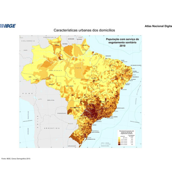 O Brasil sudestino concentra a ampla maioria da rede e mesmo assim, apresenta descontinuidade de acesso ao saneamento básico ao longo de seu território (ver mapa acima, de 2010).