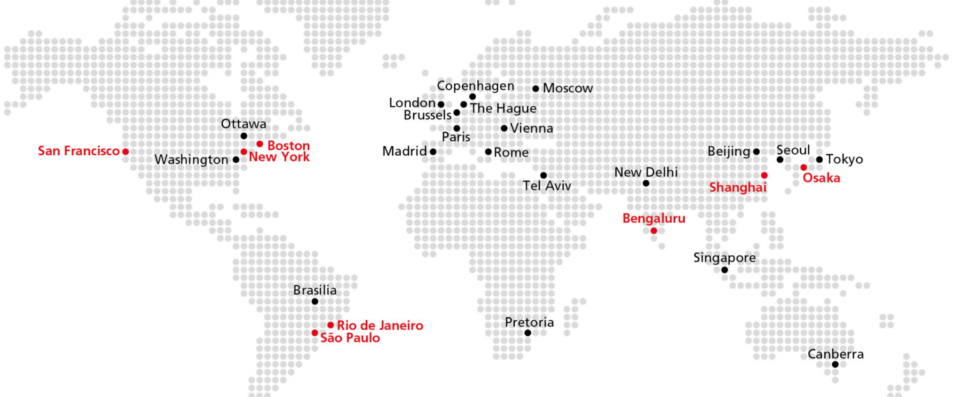 Our mission is to support our partner’s outreach and active engagement in the international exchange of knowledge, ideas and talent. The six main Swissnex locations are established in the world’s most innovative regions. Together with around 20 Science Offices and Counselors based in Swiss embassies, we contribute to strengthen Switzerland’s profile as a world-leading hotspot of innovation.