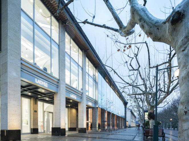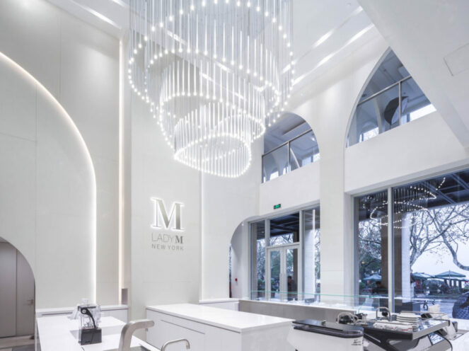 This flagship store designed for Lady M China is located on the shore of the legendary West Lake in Hangzhou. A modern composition on the theme of “arches by the water”, the design invites guests to embark on a journey through a succession of spaces delineated by elegant, asymmetrical curves which channel both Chinese garden design and the charm of European water towns. A tribute to the rich cosmopolitan and composite design language of the region, Lady M’s Arcades by the West Lake aim to enhance the sweet, gastronomic experience through variations on a readable design language which bridges old and young, traditional and new, all in a setting of breathtaking beauty.