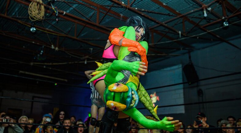 Choke Hole places a queer lens on the traditionally machismo world of wrestling, using drag and queer performance to intensify and make apparent the inherently flamboyant and camp elements of professional wrestling. The show combines lip sync performances, choreographed wrestling matches, acting, character building, and video elements to create an immersive nightlife experience. Choke Hole Matches are defined by one of the most important queer performative tools, exaggeration. In this show, exclusive to the Climate Ring, a seafaring lesbian climate hacktivist takes on a white dreadlocked hippie cop for using too many single-use plastic straws.