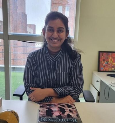 Laasya Samhita is a molecular biologist by training and explores problems at the intersection of molecular biology (how questions) and evolutionary biology (why questions). While DNA-based or genetic change is fairly well understood, the mechanisms by which non-genetic cellular changes contribute to adaptation and evolution remain poorly known. Her lab will investigate how non-genetic variation can contribute to shaping phenotypes and evolution using in vivo and in vitro molecular biology techniques combined with genetics and experimental evolution. Specifically, the lab will focus on the themes of mistranslation and antibiotic resistance, combining basic and applied research.