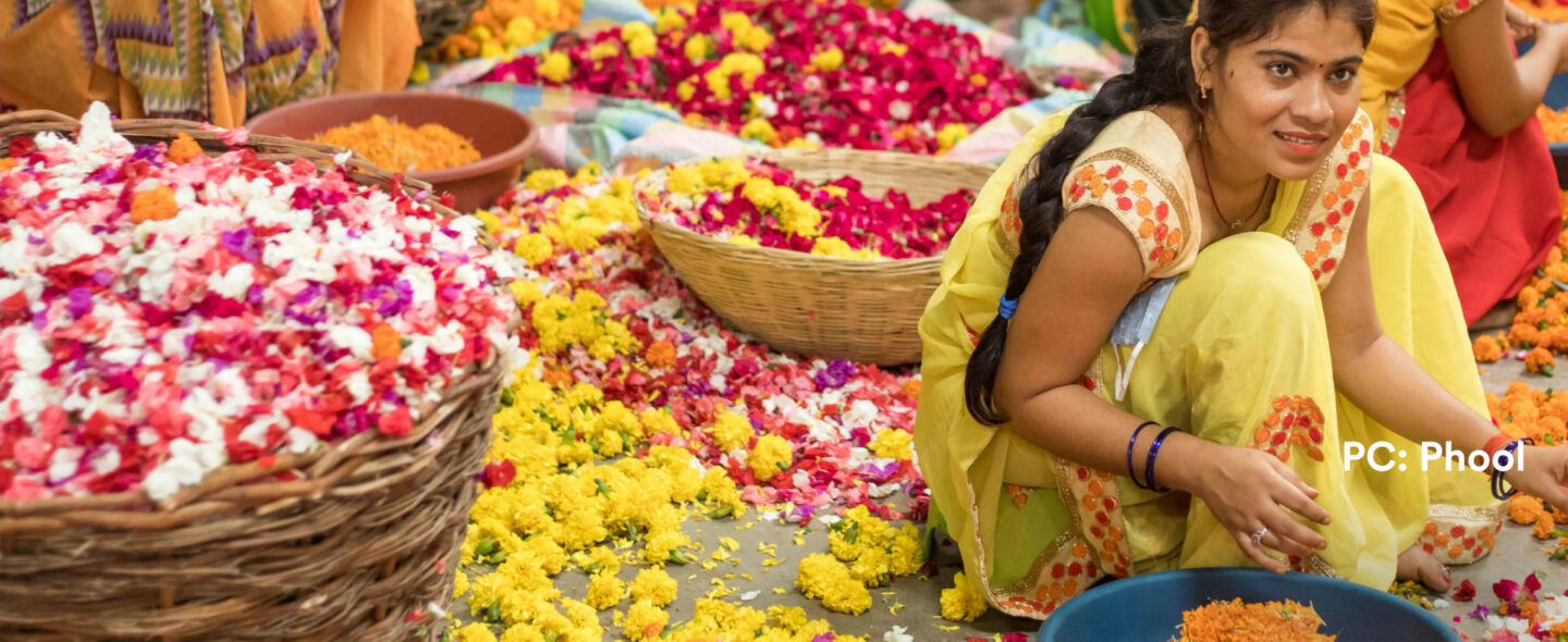 In the northern Indian city of Kanpur, where the sacred Ganges flows past ancient temples, thousands of tons of flowers that are offered at temples as a mark of devotion have been getting dumped into the river. Laden with pesticides, these flowers, which earlier used to appropriately decompose into the soil of the river banks, started rotting in the river because of stagnation of water flow due to the construction of dams and other modern interventions. They turn into major pollutants and disrupt the aquatic ecosystem. Ankit Agarwal, CEO of Phool and a native of Kanpur, returned to his hometown after studying and working outside the city. While showing a Czech friend around, who pointed out the massive levels of wastage and pollution, Ankit had an idea—what if these flowers could be repurposed instead of discarded? Ankit then began reaching out to the Indian Institute of Technology (IIT) Kanpur’s scientific community for support, where he met Nachiket Kuntla, now the Head of Research and Development at Phool. The company got its name from the very raw material its business model is based on. ‘Phool’ is the Hindi word for ‘flower’.