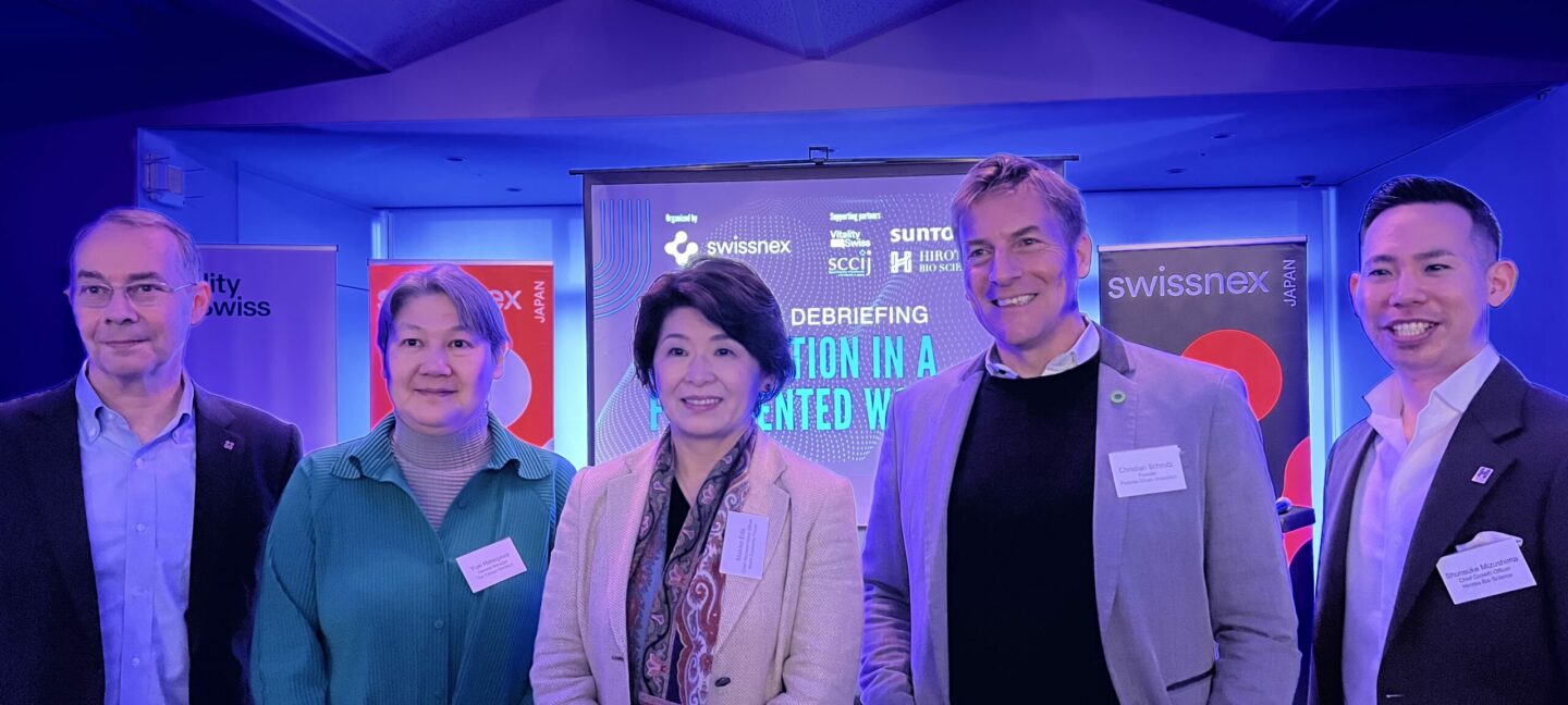 Insights to mega trends & more! – In light of the Annual Meeting 2023's theme "Cooperation in a Fragmented World", the Consulate of Switzerland, Swissnex in Japan hosted the Davos Debriefing to offer a window to the World Economic Forum’s famous stage in the Swiss alps where mega trends and solutions were discussed. Makiko Eda, Chief Representative Officer of the World Economic Forum (WEF) Japan set the tone by presenting a brief history of the WEF and an overview of the Annual Meeting in Davos 2023, where different challenges faced by the world were addressed such as energy and food crises, high inflation and low growth economy, industry headwinds, social vulnerabilities, and geopolitical risks. These challenges impacted most of the discussions during the 480 sessions given by 6 key themes at the WEF. – A wonderful audience thoroughly engaged with the panelists asking thought-provoking and in-depth questions. The networking event with individual discussions concluded this successful event. We plan to be back with the 𝗗𝗮𝘃𝗼𝘀 𝗗𝗲𝗯𝗿𝗶𝗲𝗳𝗶𝗻𝗴 in 2024! Our greatest appreciation goes to: Makiko Eda, Chief Representative Officer, World Economic Forum Yuki Hasegawa, General Manager, Tohoku General Headquarters, THE YOMIURI SHIMBUN, Shunsuke Mizushima, Senior Vice President/Chief Growth Officer, HIROTSU BIO SCIENCE INC. Christian Schmitz, Founder, PDIE Group Group. Moderation: Dr. Felix Moesner, Swiss Consul & Swissnex CEO (Bios available at the bottom of page) The debriefing event in Osaka has been organized by the Consulate of Switzerland, Swissnex in Japan with the support of Suntory Holdings Limited, PDIE Group , HIROTSU BIO SCIENCE INC., Swiss Chamber of Commerce and Industry in Japan SCCIJ and Vitality.Swiss (Embassy of Switzerland in Japan and Presence Switzerland). The World Economic Forum is an independent international organization committed to improving the state of the world by engaging business, political, academic and other leaders of society to shape global, regional and industry agendas. Incorporated as a foundation in 1971, and headquartered in Geneva, Switzerland, the World Economic Forum is not-for-profit. More >> www.weforum.org