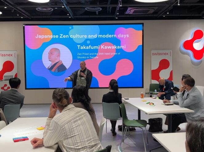 We delved deep into the intersection of mindfulness and leadership in today’s dynamic world. From the enriching insights of Stefanie Neumann and Christoph Hoffmann from ZHAW, to the profound overview of Japanese Zen culture by Zenryu Kawakami, and the thought-provoking talk on long-term thinking by Shoukei Matsumoto, every moment was filled with inspiration and wisdom. The interactive workshop provided a platform for fruitful discussions on leadership, fostering connections between diverse perspectives in both English and Japanese. We discussed the following 3 questions, and we received colourful results after this!