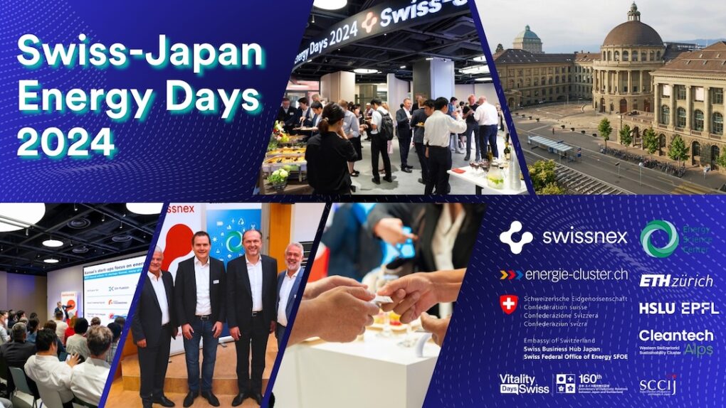This event is co-organized by Swissnex in Japan and the Energy Science Center of ETH Zurich, in partnership with the Swiss Federal Office of Energy (SFOE), Lucerne University of Applied Sciences and Arts (HSLU), EPFL, energie-cluster.ch, CleantechAlps, Swiss Business Hub Japan, and the Swiss Chamber of Commerce and Industry in Japan (SCCIJ) and supported by The Adecco Group and Bühler KK. This year’s conference is also part of the “Swiss Vitality Days 2024,” powered by Vitality.Swiss to engage multiple Swiss and Japanese stakeholders from September to October 2024.