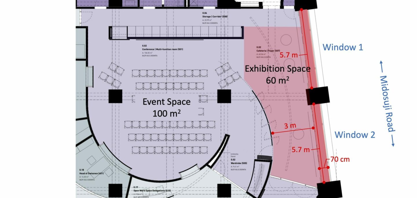 Are you an artist, designer, entrepreneur, scholar, tech firm, research institution, or cultural organization with a link to the Swiss academic, public, or private sector and looking to present your creative content and innovative ideas in Japan? Illuminate your project in this captivating exhibition space (60 to 160 m2) facing Midosuji, the Champs Elysees of Osaka, with 10,000 passersby per day!