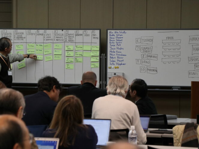 The third and last morning was dedicated to longer, in-depth conversations about joint research ideas and opportunities. The afternoon started with a deeper dive into research led by Prof. Jamie Paik (Founder and Director, Reconfigurable Robotics Lab, EPFL) and Prof. Josies Hughes (Tenure Track Assistant Professor, Computational Robot Design & Fabrication Lab, EPFL), respectively, on modular robots and hybrid robots inspired by nature. Each Moonshot Project Manager then synthesized their discussions and the collaboration ideas that took shape during the one-on-one exchanges. Finally, the workshop was wrapped up with a summary of Moonshot’s funding scheme, followed by comments by the Program Director of Moonshot Goal 3, Prof. Toshio Fukuda, and a closing remark from Prof. Robert Katzschmann.