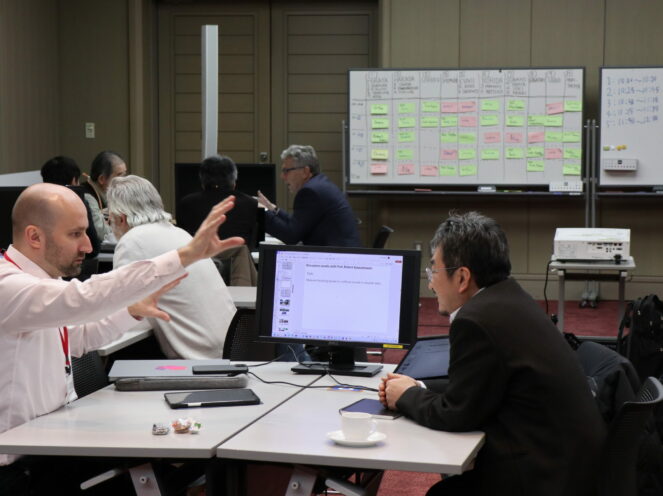 On January 19, the plenary session started with an introduction to the Moonshot program, its funding schemes, and the workshop’s aim by Dr. Hideo Nakajima (Director, Department of Moonshot Research and Development Program, JST). Prof. Kazuya Yoshida (Head, Space Robotics Laboratory, Department of Aerospace Engineering, Tohoku University) then proceeded to open the presentation session by wishing everyone a fruitful workshop. First, all ten Moonshot Goal 3 projects were presented by the Japanese researchers in charge. They were followed by the European researchers’ presentations, giving insights into their various projects that had the potential for joint research with the Moonshot program. Altogether, the presentations covered a noteworthy variety of robotic fields, applications, and other topics related to AI and robots. Soft robotics, swarm robotics, nanorobotics, and modular robotics, to name a few, were mentioned through the presented projects covering domains of applications related to healthcare, space exploration, education, environment, and so forth. Some of the researchers also shared their views on open questions revolving around enhancing the versatility of AI robots, coexisting and creating a symbiotic relationship with them, and creating more sustainable robots and a smarter, inclusive society with and through them. The presentations were then followed by one-on-one discussion sessions, allowing the researchers to have a first individual encounter with each of their counterparts.