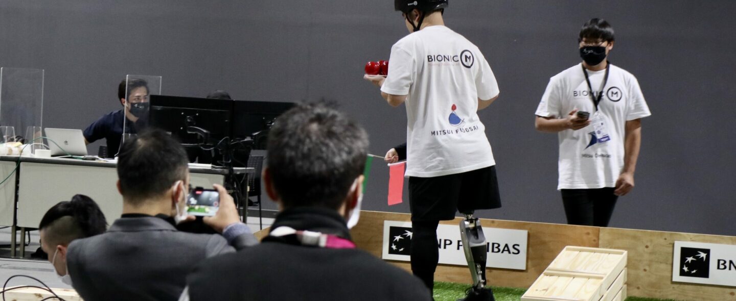 Fortississimo, C.I.T. and BionicM also offered demonstrations to the public on the weekend following the international competition which took place on November 13 and 14. On Sunday the 15th, a talk show was organized by Miraikan together with Dr. Hiroaki Hobara of the National Research Institute of Advanced Industrial Science and Technology (AIST) and a Paralympian, Mr. Keita Tezuka. Prof. Genya Ishigami of Keio University and former Paralympian, Mr. Hiroshi Nojima who competed on the powered wheelchair for team Fortississimo also presented on stage. The partially real, partially online event was effective in spreading the ideals of the CYBATHLON to a broader Japanese audience