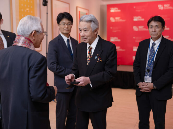 The gathering hosted at the Swiss Residence welcomed almost 300 guests from all horizons. Among them, highly distinguished guests from the science and technology landscape honored the event with their presence. The MEXT Minister, Dr. Masahito Moriyama, was accompanied by the Science and Technology Advisor to the Minister and President of the National Institutes for Quantum Science and Technology (QST), Prof. Dr. Shigeo Koyasu, the Vice-Minister for International Affairs, Mr. Hiroshi Masuko, the Director General of the Science and Technology Policy Bureau, Dr. Yasuyoshi Kakita, and the Assistant Minister and Director-General for International Affairs, Mr. Masami Watanabe. The Science and Technology Advisor to the Minister of Foreign Affairs (MOFA), Prof. Dr. Yoichiro Matsumoto, was also present. To name a few more, the President of the Japan Aerospace Exploratory Agency (JAXA), Prof. Dr. Hiroshi Yamakawa, the President of the Japan Agency for Medical Research and Development (AMED), Prof. Dr. Yoshinao Mishima, the President of Research Organization of Information and Systems (ROIS), Prof. Dr. Masaru Kitsuregawa, as well as, the President of the National Institute of Information and Communications Technology (NICT), Prof. Dr. Hideyuki Tokuda, the President of Keio University, Prof. Dr. Kohei Itoh, and the President of Sophia University, Prof. Dr. Yoshiaki Terumichi, also joined the festivities.
