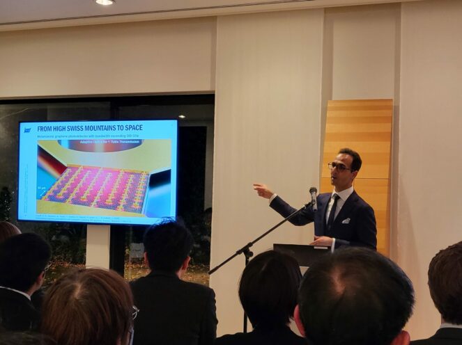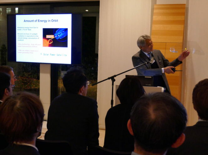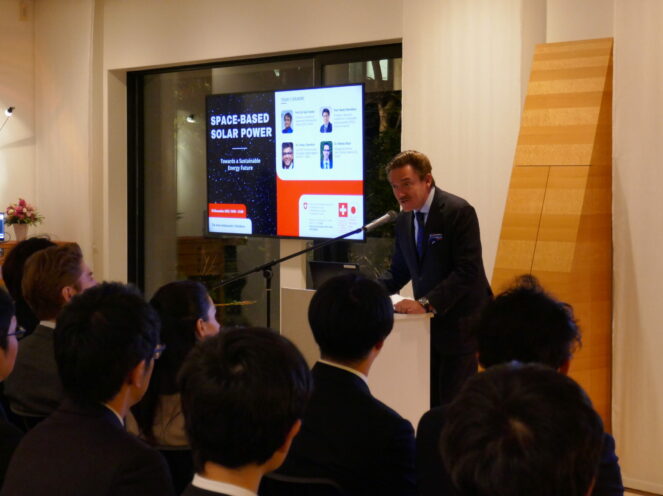 The event started with an address by the host, the Ambassador of Switzerland in Japan, Dr. Andreas Baum, who emphasized Switzerland’s excellence in space research and its already well-established collaborative relationship with Japan on space missions, bilaterally or via ESA. The audience then had the opportunity to hear insightful talks about recent progress in Space-Based Solar Power (SBSP) given by leading experts from Japan and Europe.